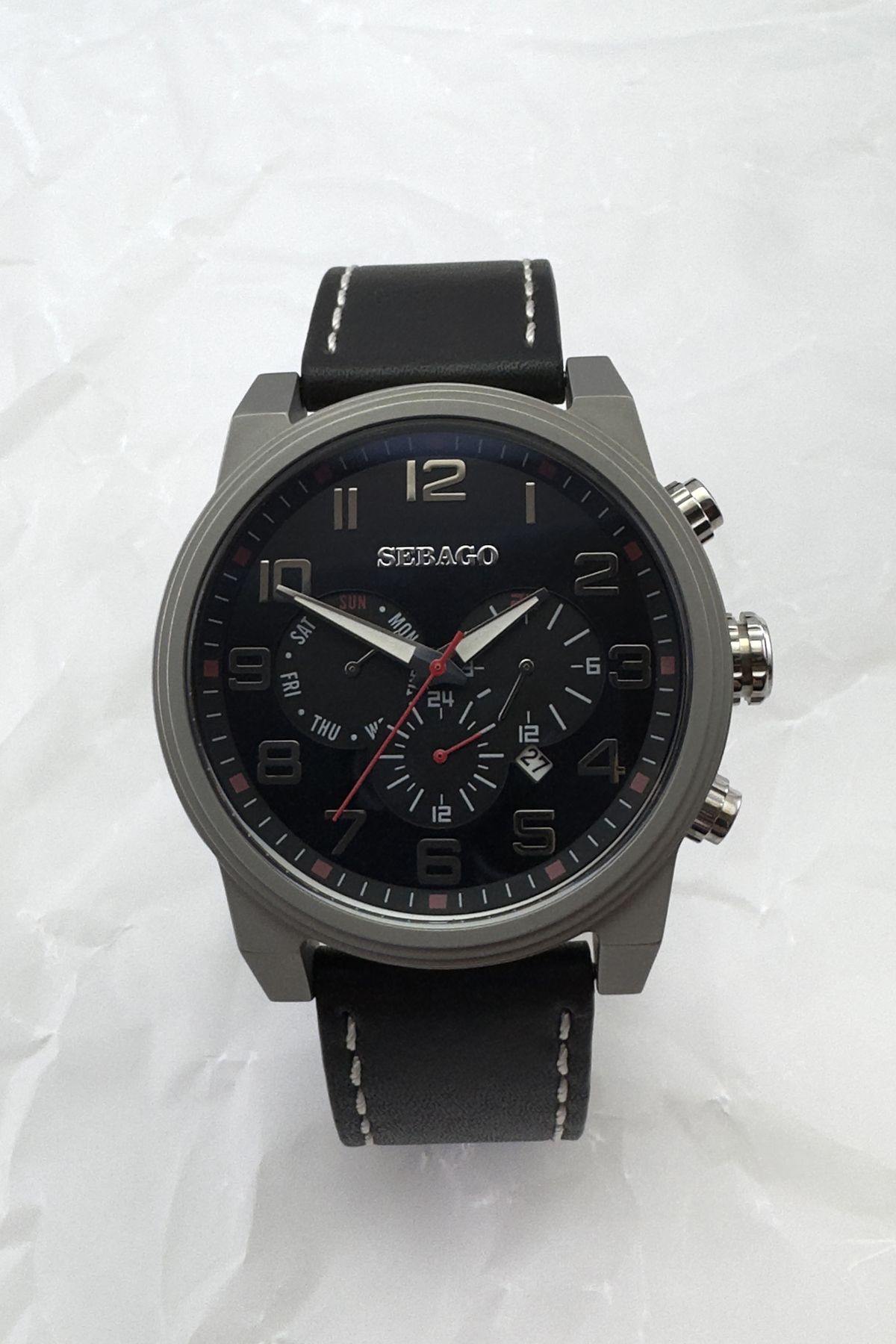Alarm: Yok Cam Tipi: Mineral Cinsiyet: Erkek Ekran Tipi: Analog Kadran Rengi: Siyah Kadran Şekli: Yuvarlak Kadran Taşı: Yok Kasa Materyali: Çelik Kasa Rengi: Gri Kasa Taşı: Yok Kordon Materyali: Deri Kordon Rengi: Siyah Kronometre: Yok Marka: Sebago Mekanizma: Pilli Suya Dayanıklılığı: 5 ATM Takvim: Var Kasa Çapı: 48 mm