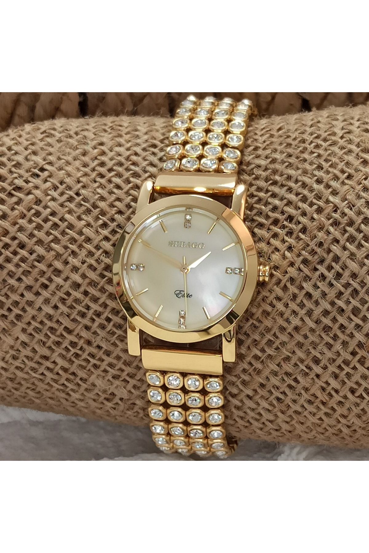 Alarm: Yok Cam Tipi: Mineral Cinsiyet: Kadın Ekran Tipi: Analog Kadran Rengi: Sarı Kadran Şekli: Yuvarlak Kadran Taşı: Var Kasa Materyali: Çelik Kasa Rengi: Sarı Kasa Taşı: Yok Kordon Materyali: Çelik Kordon Rengi: Sarı Kronometre: Yok Marka: Sebago Mekanizma: Pilli Suya Dayanıklılığı: 3 ATM Takvim: Yok Kasa Çapı: 29 mm