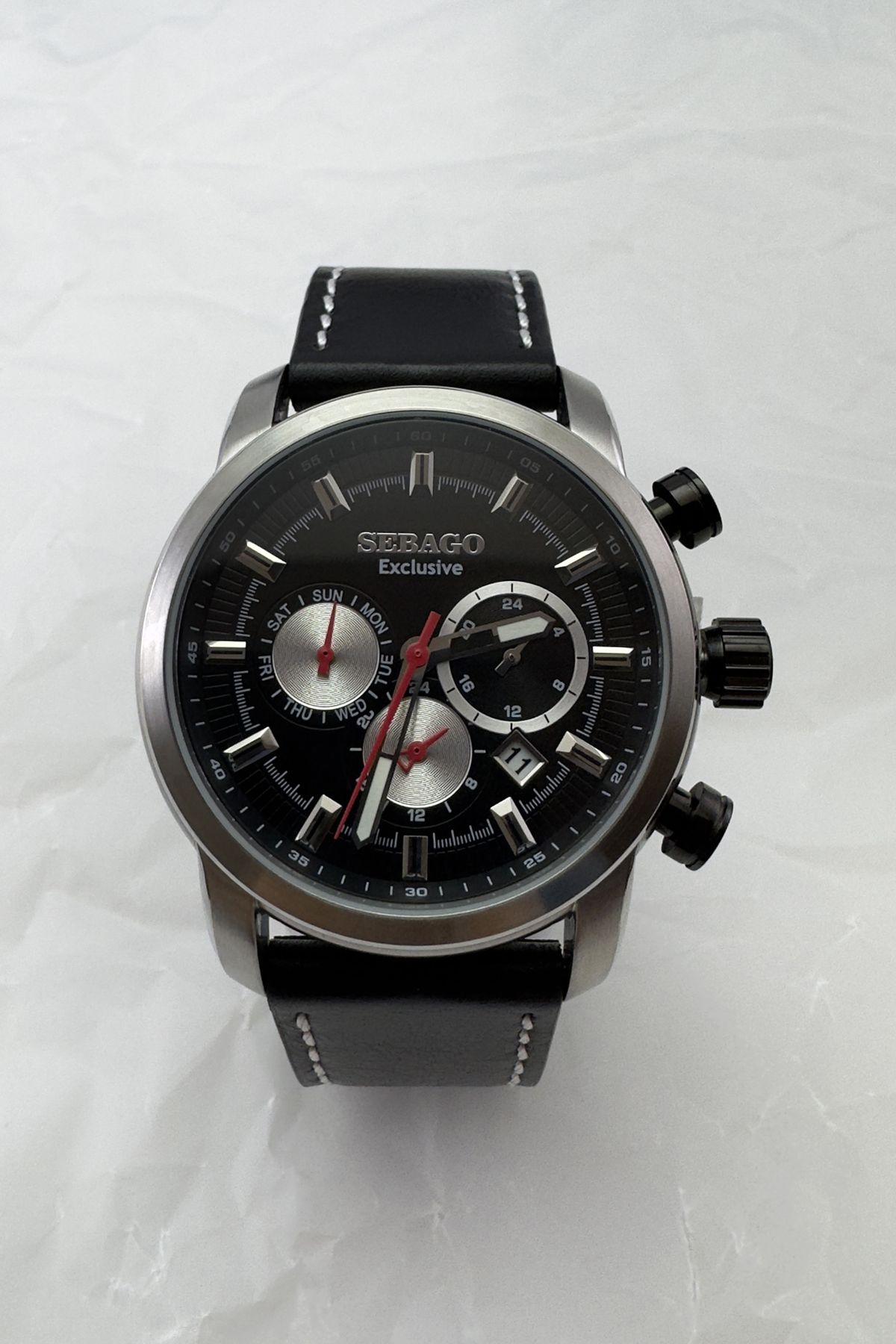 Alarm: Yok Cam Tipi: Mineral Cinsiyet: Erkek Ekran Tipi: Analog Kadran Rengi: Siyah Kadran Şekli: Yuvarlak Kadran Taşı: Yok Kasa Materyali: Çelik Kasa Rengi: Metal Kasa Taşı: Yok Kordon Materyali: Deri Kordon Rengi: Siyah Kronometre: Yok Marka: Sebago Mekanizma: Pilli Suya Dayanıklılığı: 10 ATM Takvim: Var Kasa Çapı: 44 mm