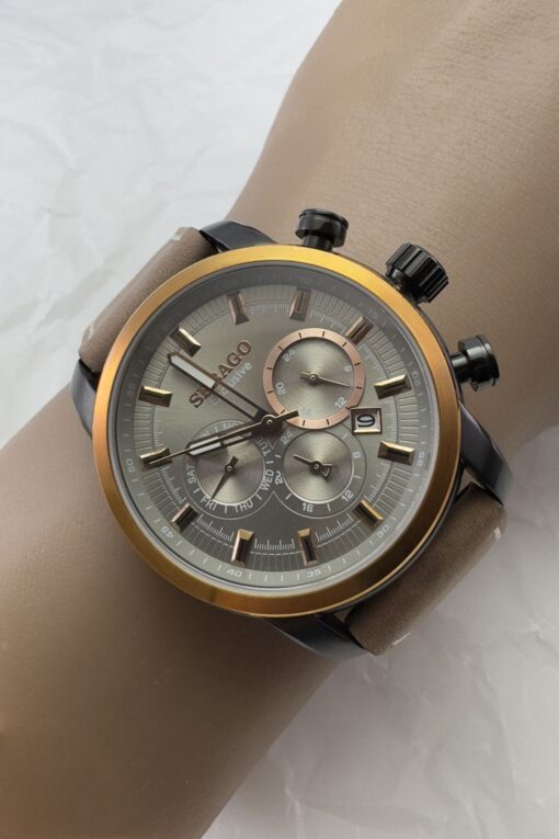 Alarm: Yok Cam Tipi: Mineral Cinsiyet: Erkek Ekran Tipi: Analog Kadran Rengi: Gri Kadran Şekli: Yuvarlak Kadran Taşı: Yok Kasa Materyali: Çelik Kasa Rengi: Siyah Kasa Taşı: Yok Kordon Materyali: Deri Kordon Rengi: Kahverengi Kronometre: Yok Marka: Sebago Mekanizma: Pilli Suya Dayanıklılığı: 10 ATM Takvim: Var Kasa Çapı: 44 mm