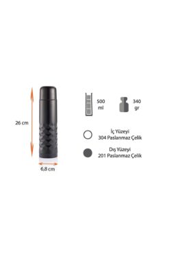 SEDEF SİLVER Aç Kapat Düğmeli Kapağı Bardaklı Paslanmaz Çelik 500 ml Çay Kahve Termos Bardak 511 -b