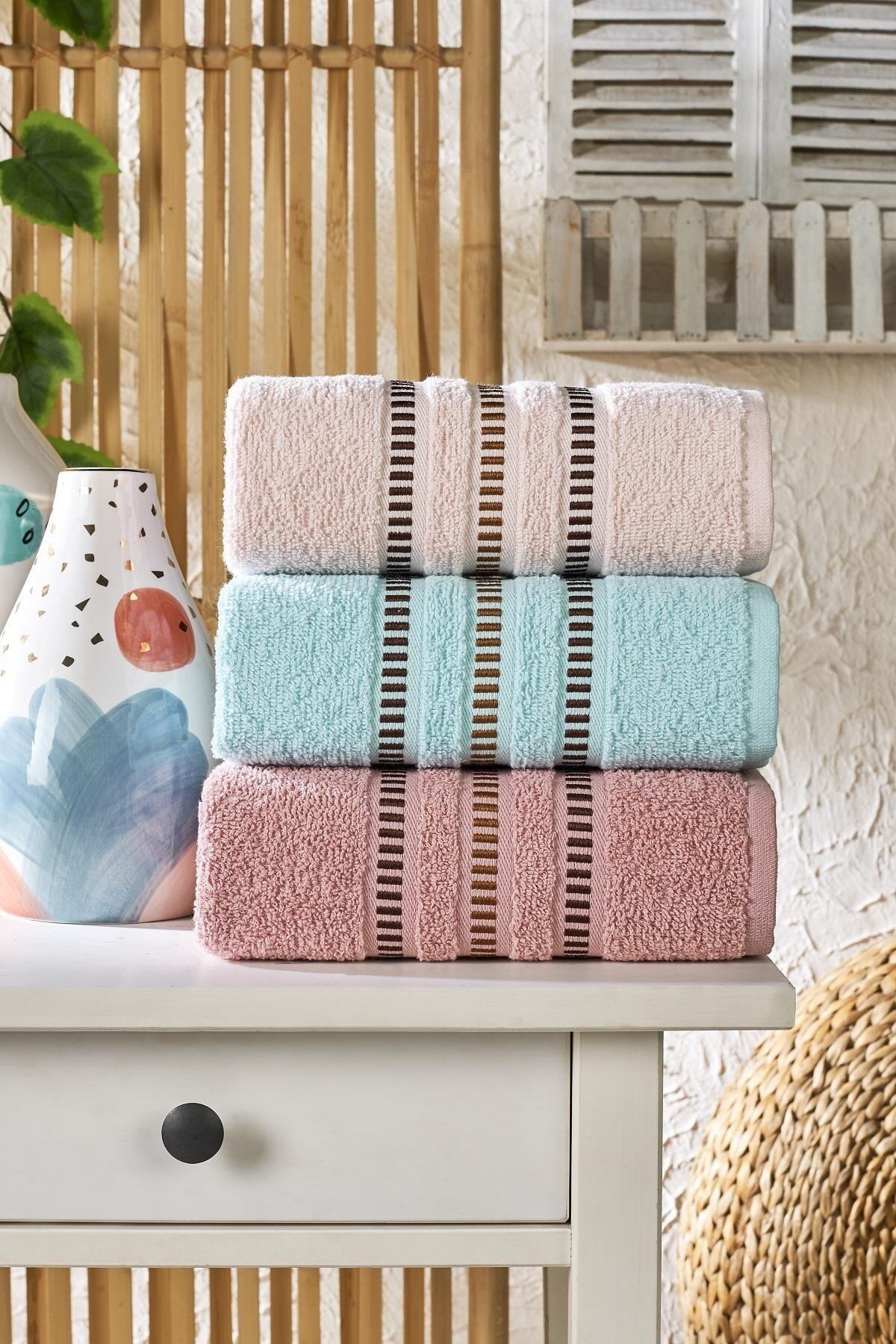 Semecca Lia Soft Bordürü Serisi 3’lü Havlu Seti 50×85