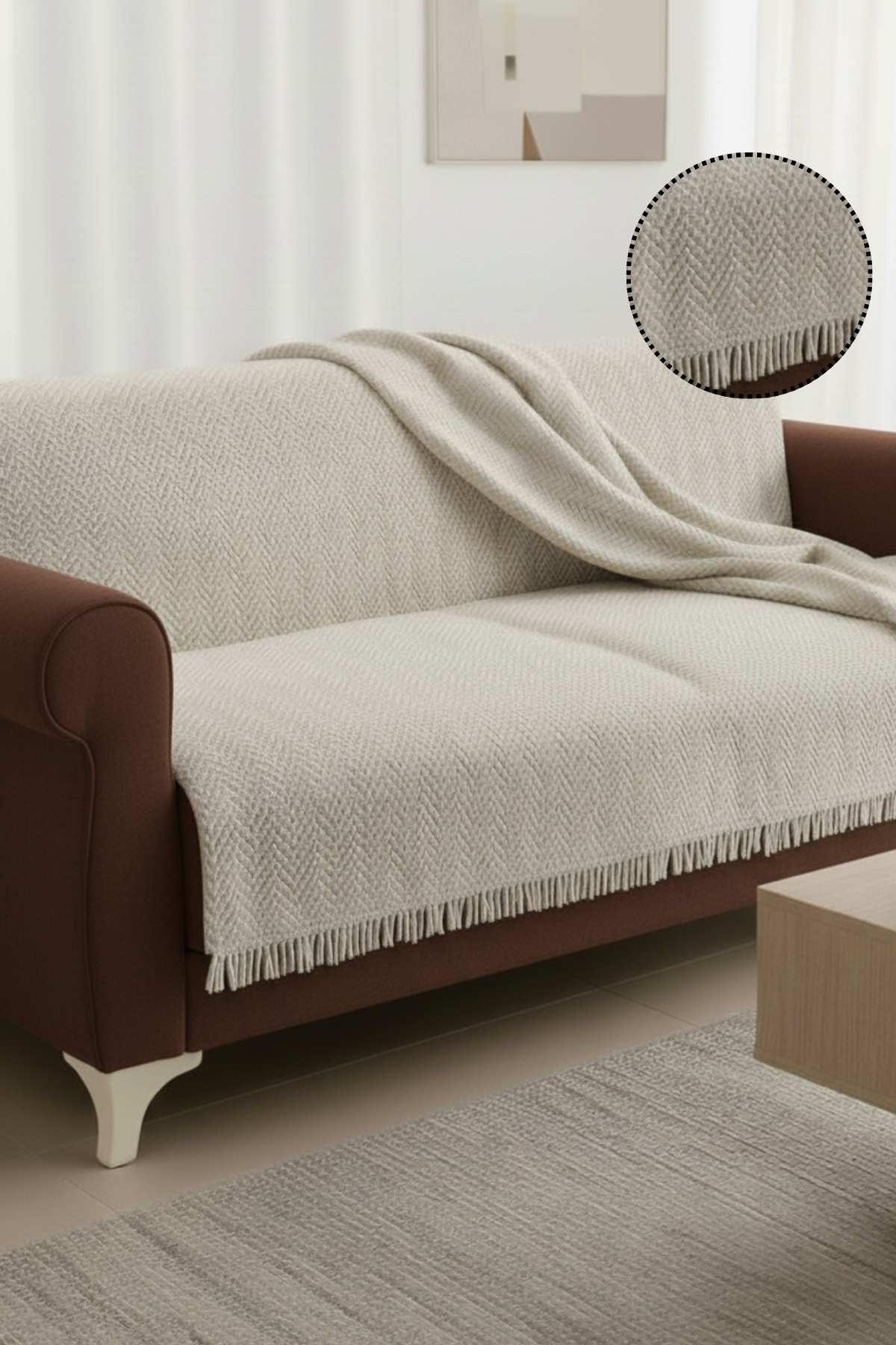 Senpai Pamuklu Koltuk Örtüsü 170×210 cm Tekli&Üçlü Koltuk,Çekyat ve Berjer İçin | Krem