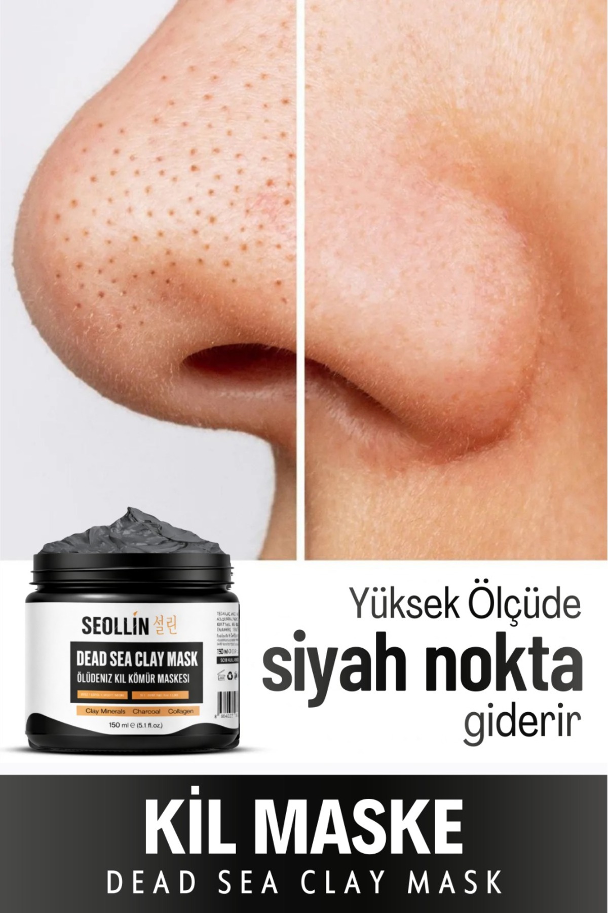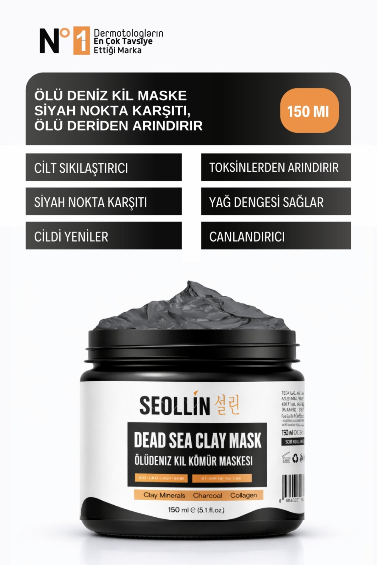 SEOLLİN Ölü Deniz Kil Maskesi Kolajen Siyah Nokta Karşıtı Ölü Deriden Arındırır Yüze Canlılık Sağlar 150g