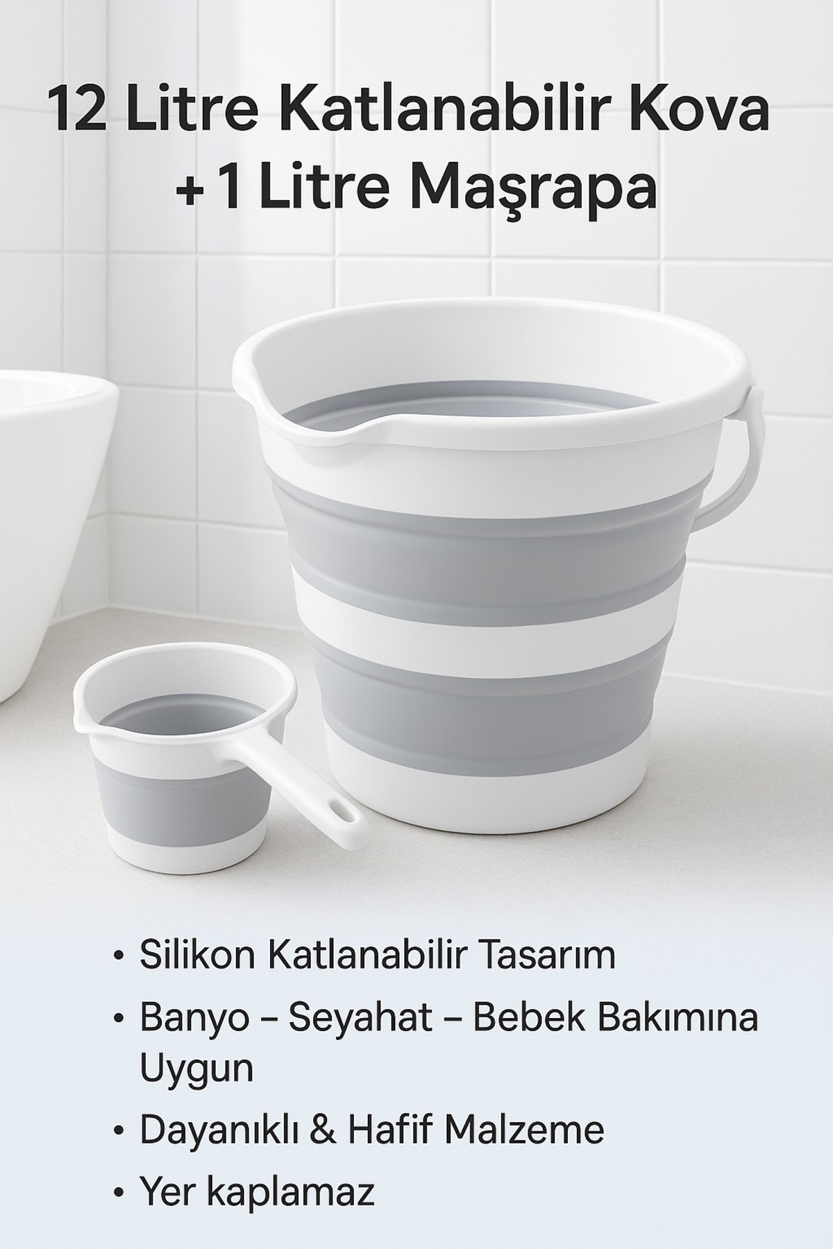 Sepetkitchen Gri Katlanır Su Kovası Ve Maşrapa