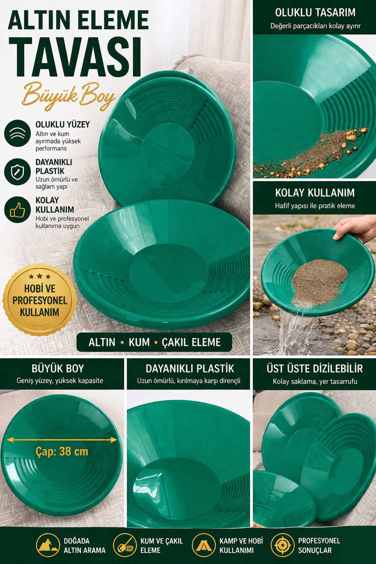 seraptakidunyasi Gold Pan Altın Eleme Tavası 38 CM Büyük Boy Kamp Outdoor Define Kum Eleme Tavası Yeşil ürünü ucuz fiyat, hızlı kargo imkanı ile hemen sitemizden sipariş verin.