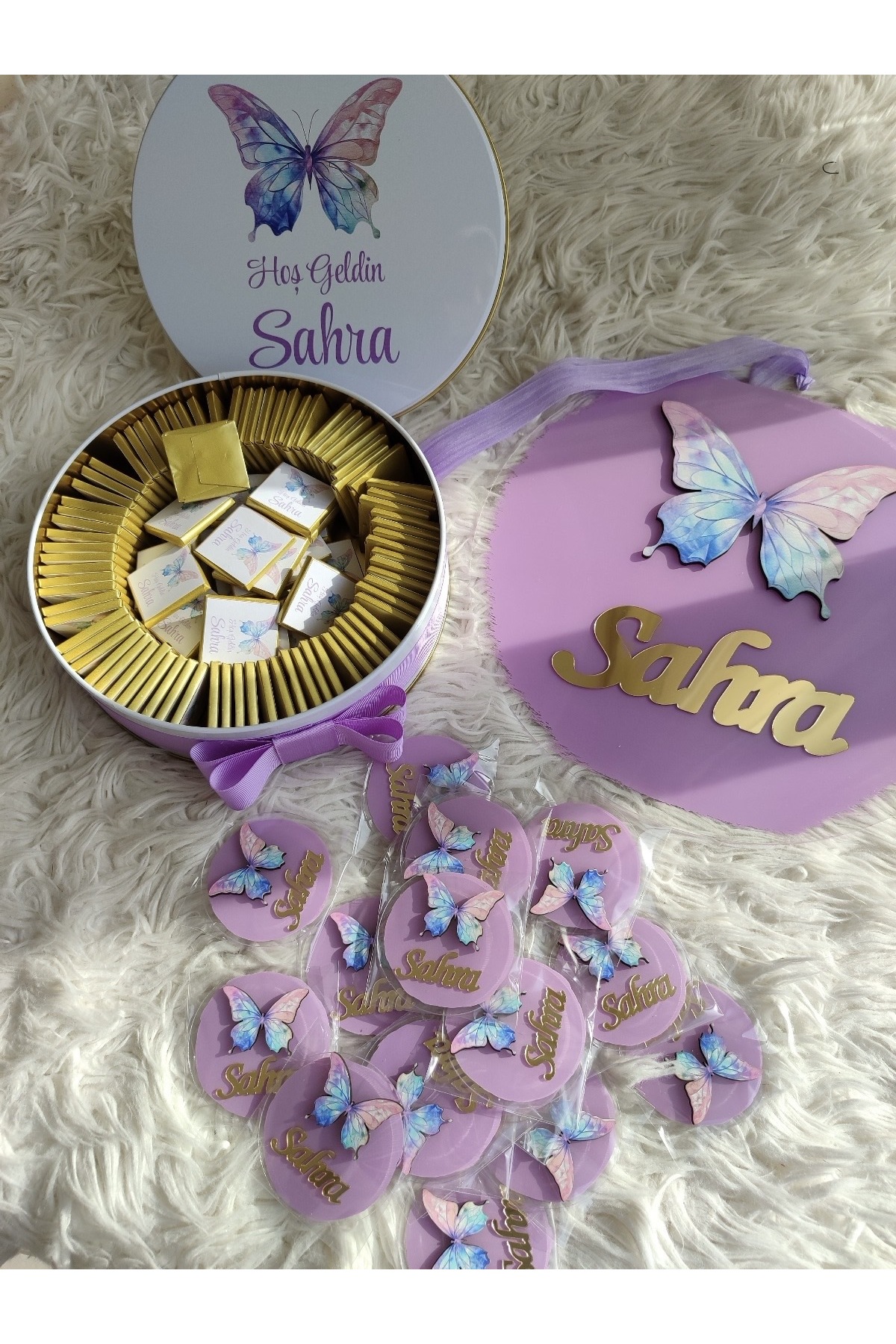Sevdalı işler Yenidoğan Bebek Hediyelik Kapı Süsü ve Çikolata Kutusu Seti