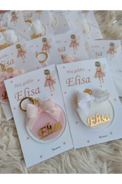 Sevdalı işler Yenidoğan Bebek Hediyelik Set 20 Adet Anahtarlık-14 Parça Anı Diski-Çikolata Kutusu içinde 70 Madlen
