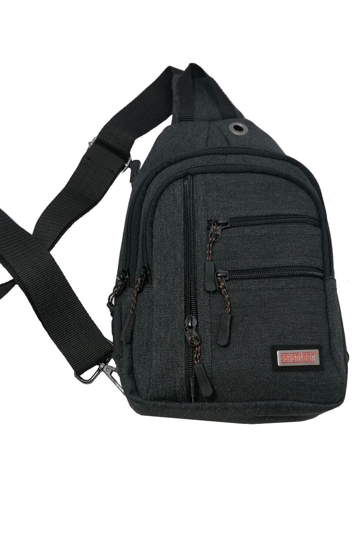 Seventeen kanvas kumaş astarlı çok gözlü erkek çapraz askılı göğüs ve sırt çantası,body bag, usb ve kulaklık çıkışlı