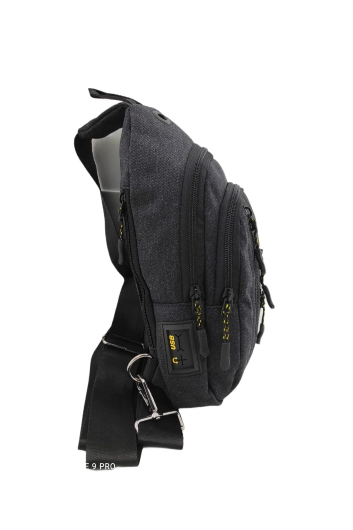 SEVENTEEN Unisex Siyah 8 Gözlü Su Geçirmez Hafif Kumaş Usb ve Kablo Çıkışlı Bady Bag Omuz Çantası