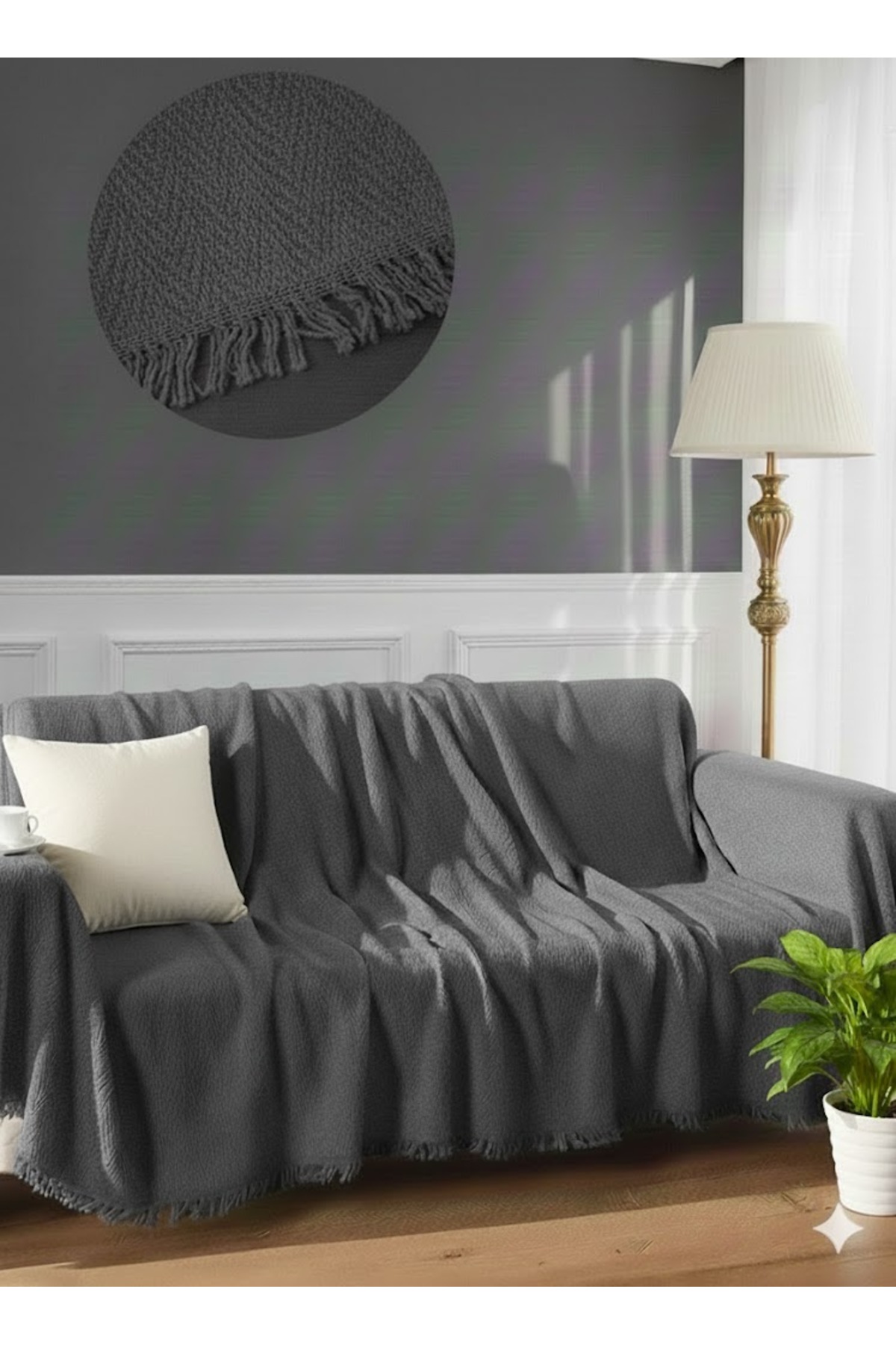 KAMİZ Fırfırlı Koltuk Örtüsü Bohem Pamuk Keten | Kaymaz, Yıkanabilir, Modern Şık Tasarım
