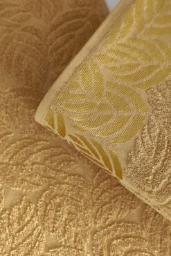 Sevim 2’li Jakarlı Yaprak Desenli %100 Pamuk El Yüz Havlusu-50x90cm-Hardal