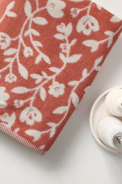 Sevim Çiçek Desenli İpliği Boyalı Kiremit Banyo Havlusu – Yüksek Su Emici & Yumuşak – 90×150 Cm-%100 Pamuk