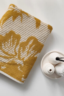 Sevim İpliği Boyalı Desenli %100 Pamuk Banyo Havlusu – Yüksek Su Emici -90×150 Cm- Hardal
