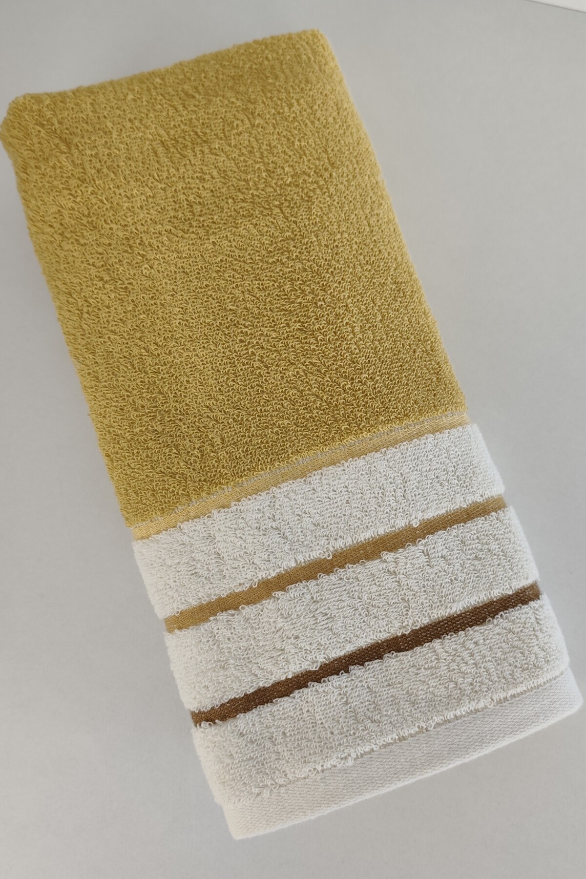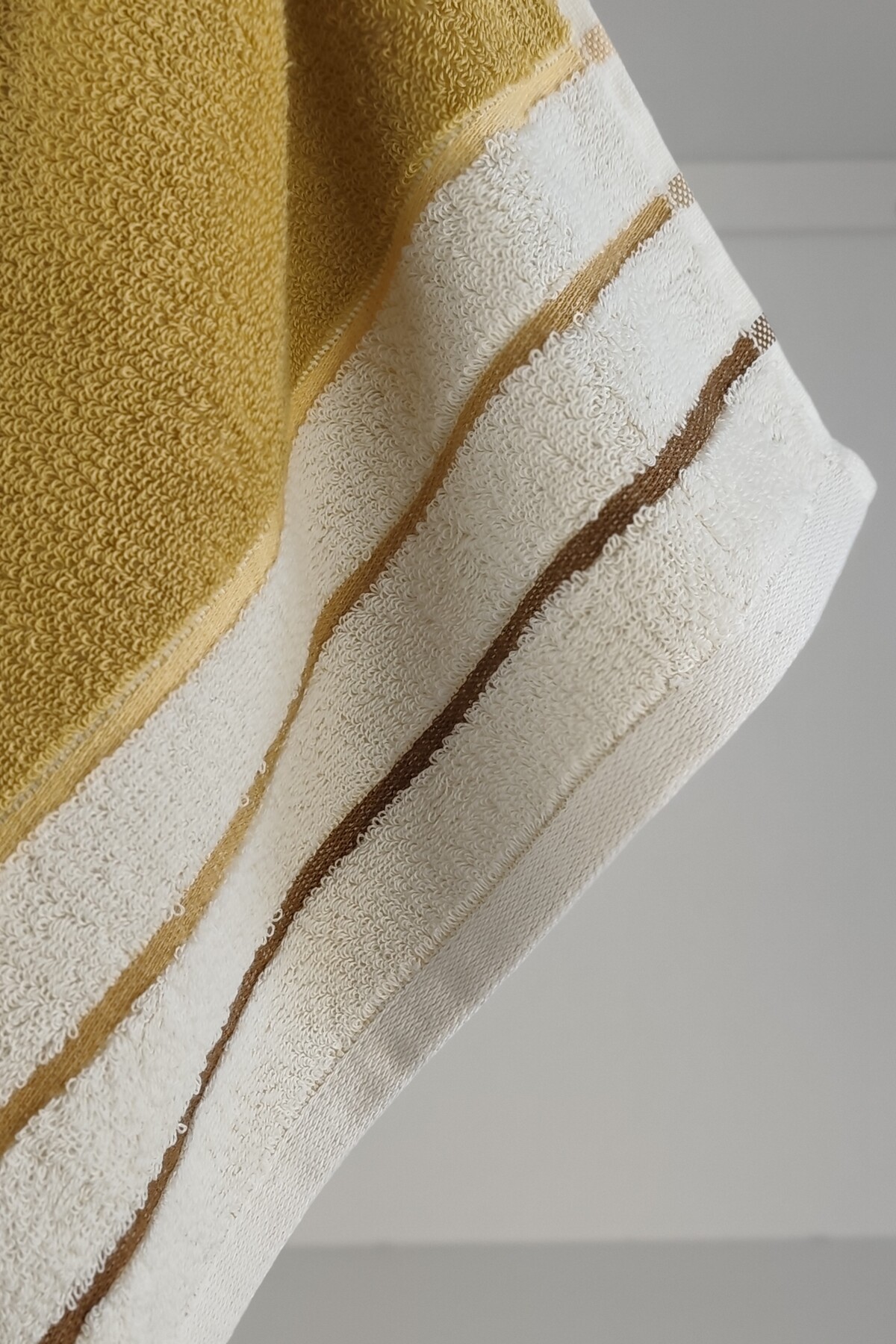 Sevim İpliği Boyalı Ucu Çizgili El Yüz Havlusu-Yüksek Su Emici-%100 Pamuk-45×85 Cm-Hardal