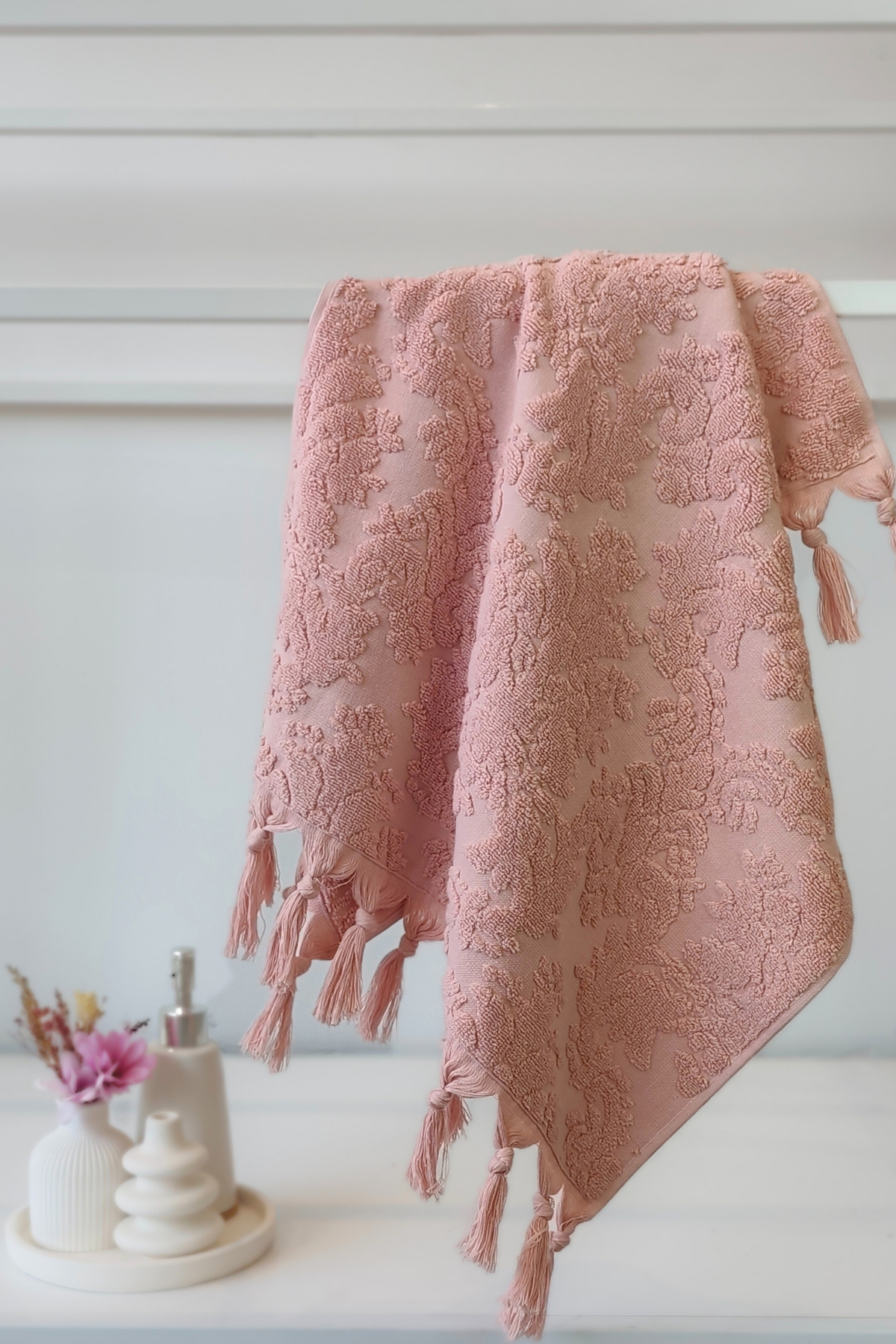 Sevim Pudra Rengi Otantik Saçaklı El Havlusu 50x90cm – %100 Pamuk – Yumuşak Ve Su Emici