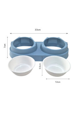 Sevpatik İkili Kedi Köpek Mama Ve Su Kabı – Eğimli Kedi Kulaklı Tasarım Mavi