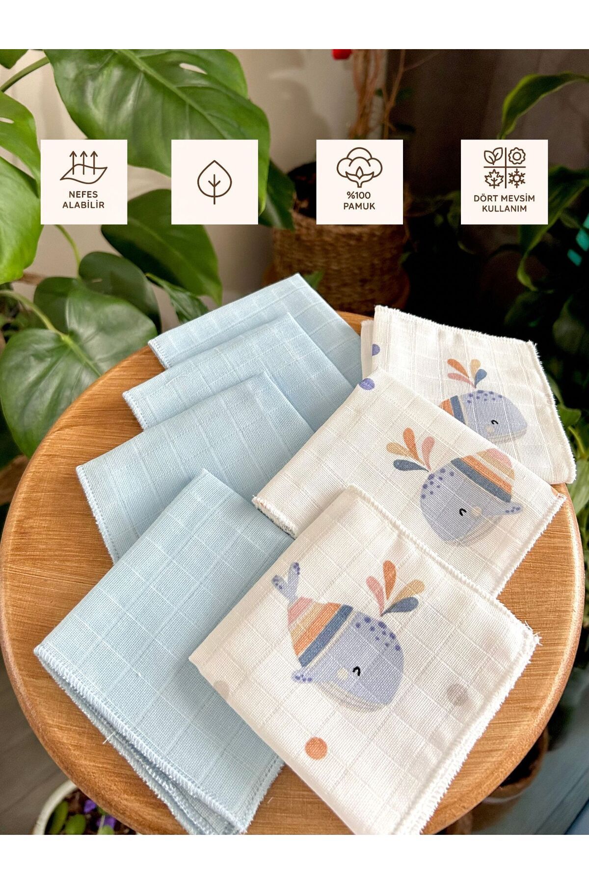 Sevza Kids %100 Pamuk 7’li Müslin Bebek Ağız Mendili Dreamy Collectıon Yunus-Mavi