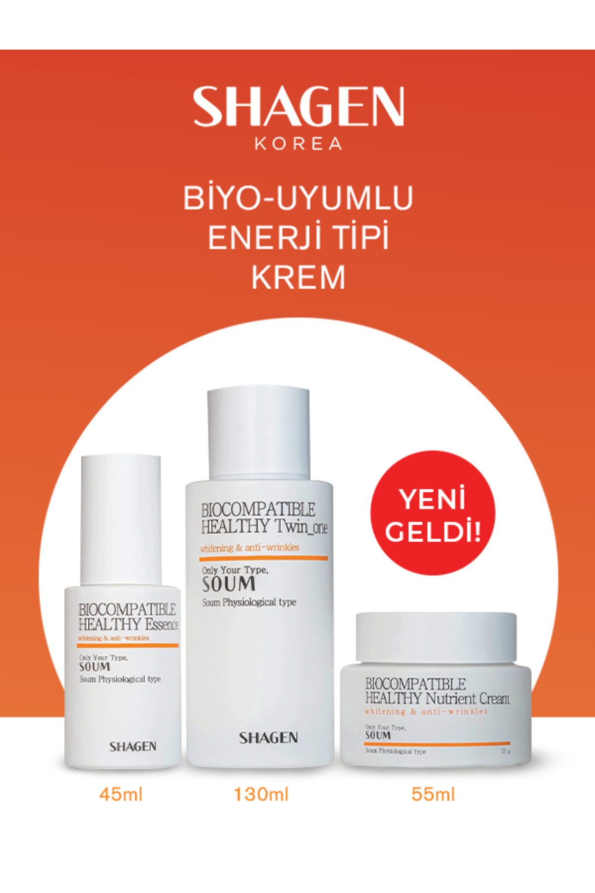 SHAGEN Yeni Soum (TURUNCU) Enerji Tipi 3’lü Set – Dörtlü Etki – Orijinal Kore Krem Seti – Ewg Sertifikalı