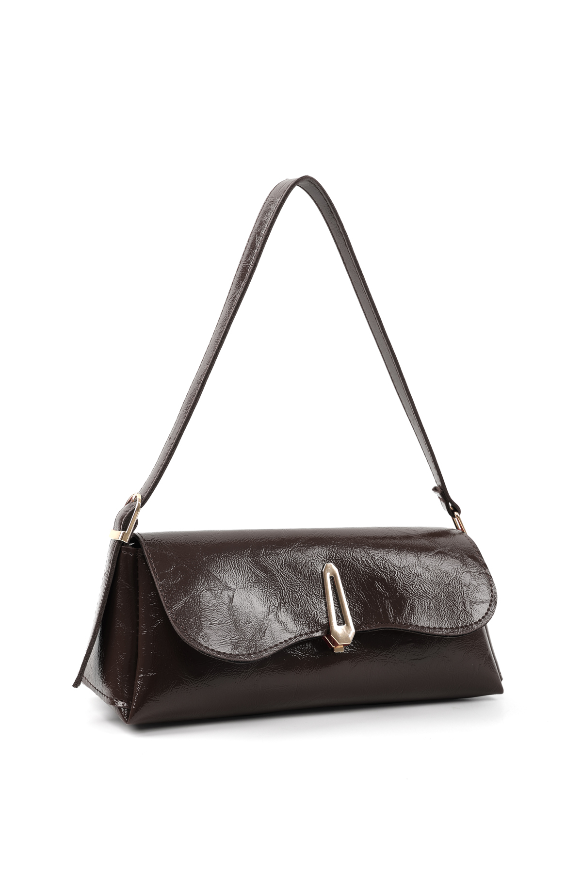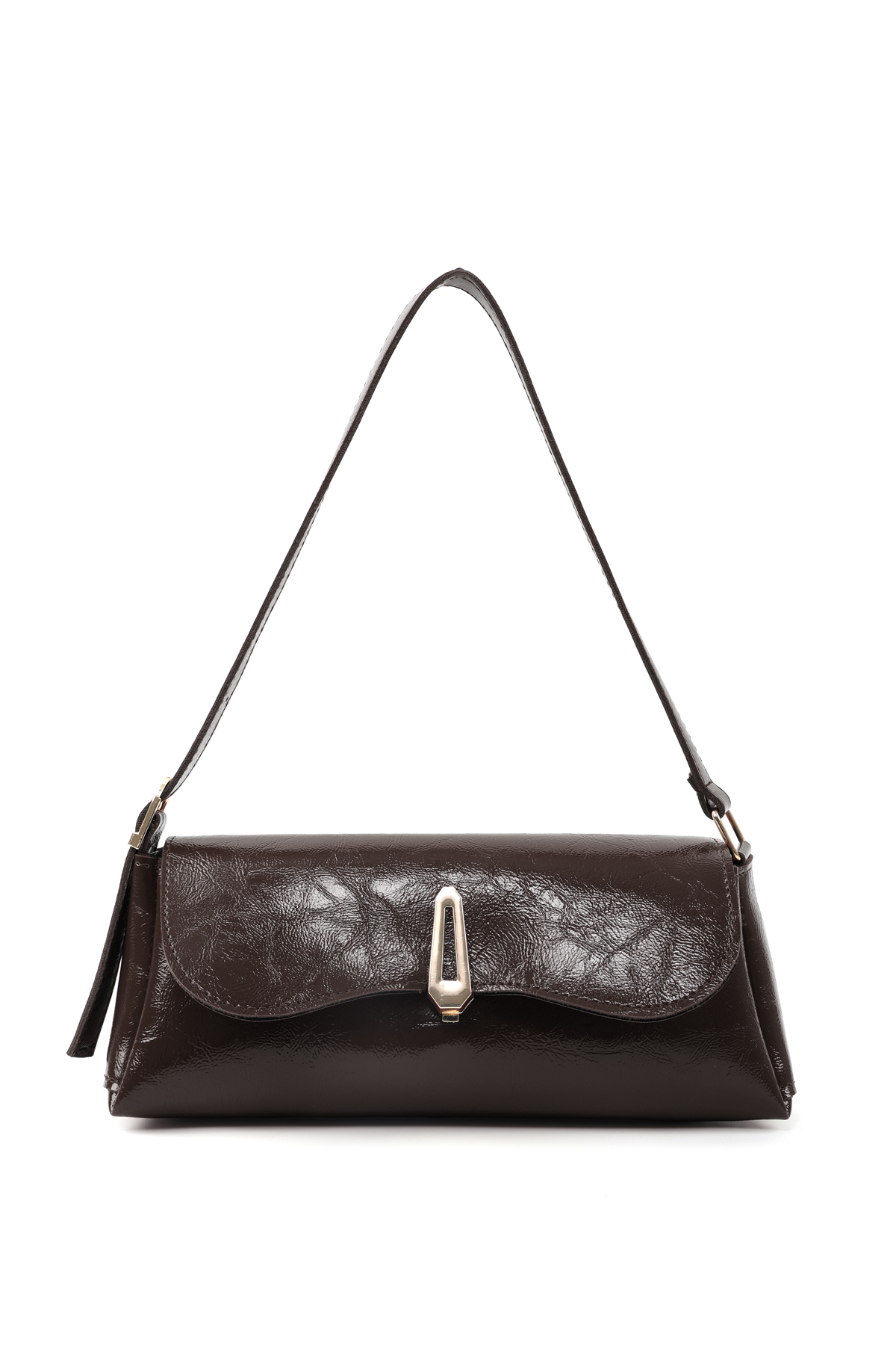 SHAKA Kırışık Dokulu Kahverengi Shk305 Suni Deri, Özel Kilit Mıknatıslı El, Kol ve Omuz Çantası
