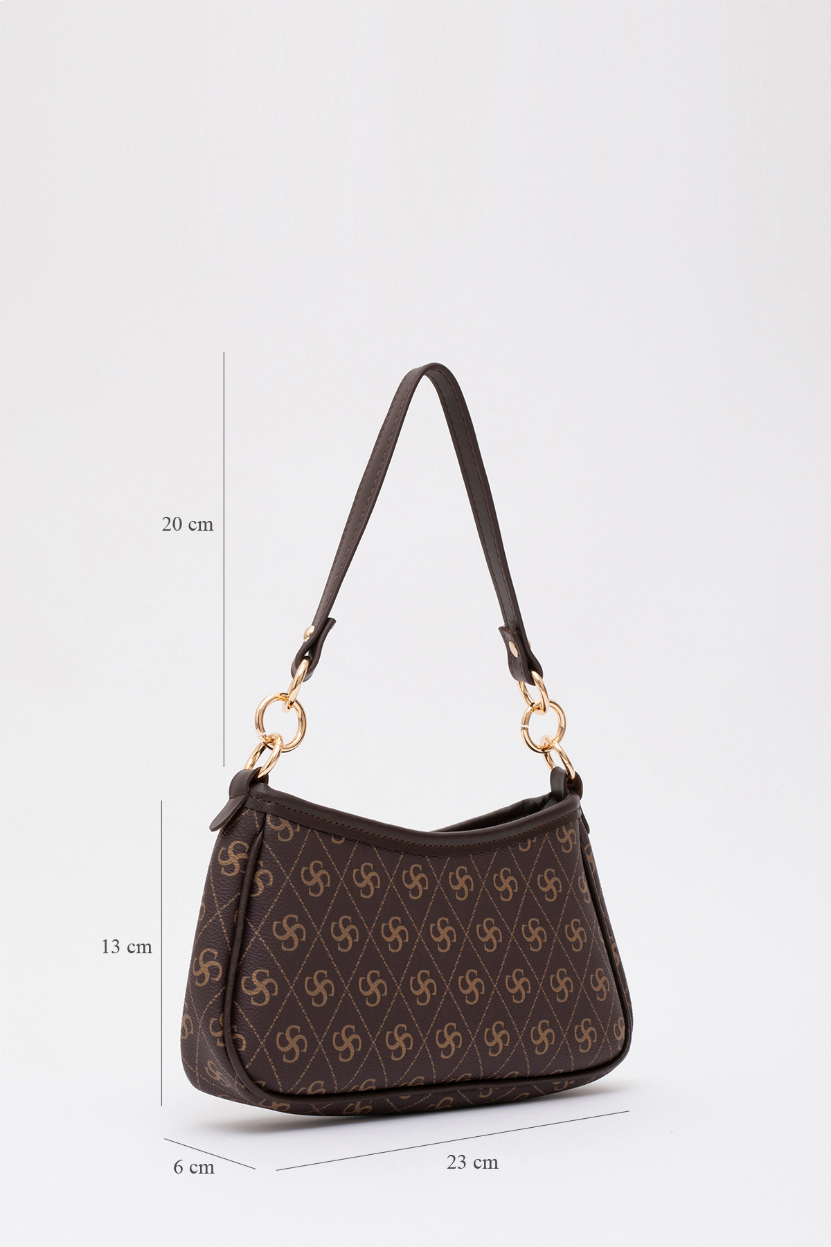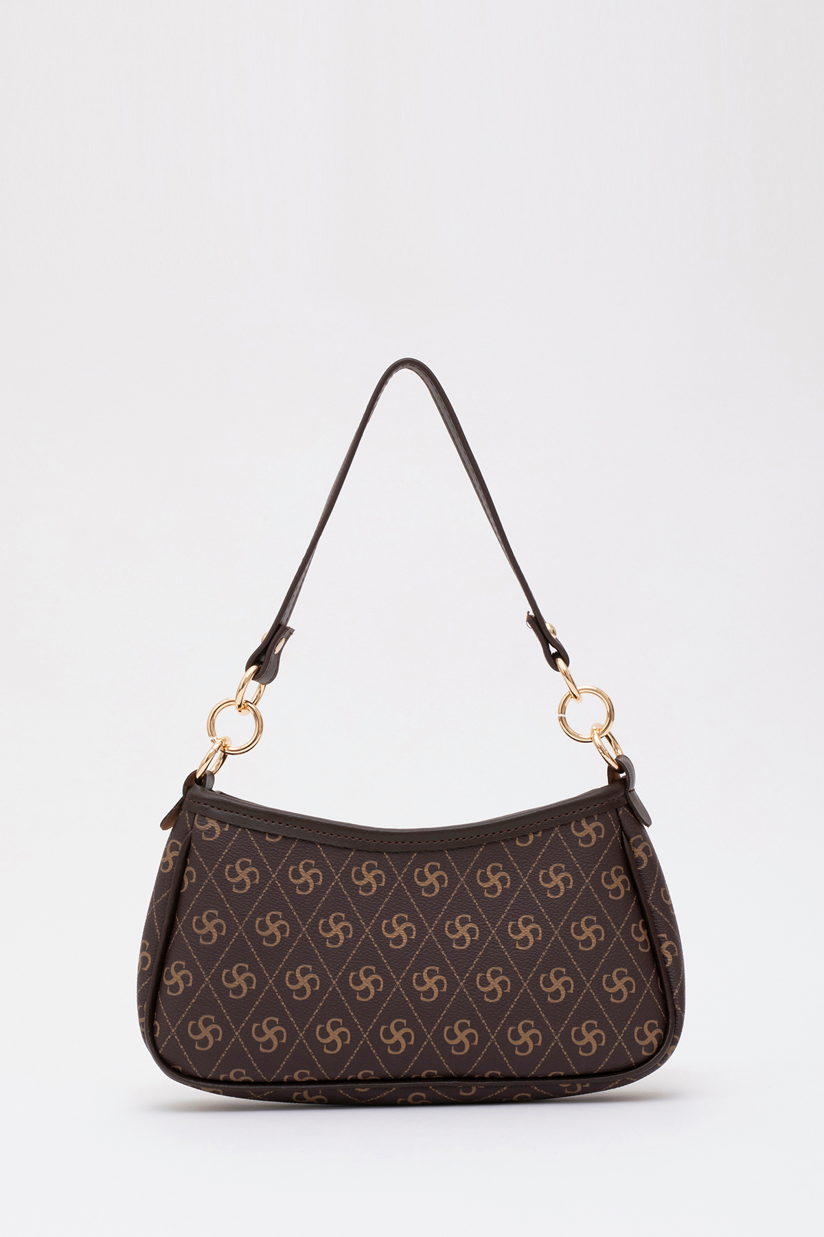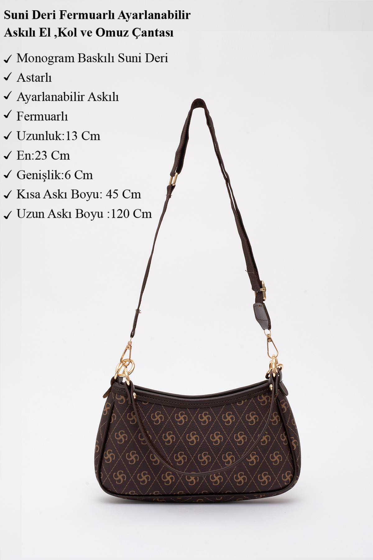 SHAKA Monogram Baskılı Kahverengi Shk113 Suni Deri Astarlı Fermuarlı Ayarlanabilir Askılı El ,kol Ve Omuz