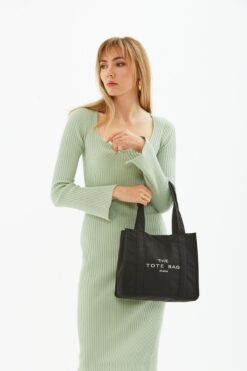 Shaka Siyah U45 Çıt Çıt Kapatmalı The Tote Bag Işlemeli Kanvas Kumaş Günlük Kadın Kol Ve Omuz Çantası 25×3