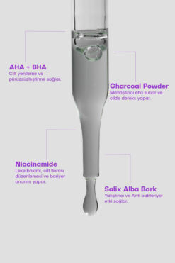 SHE VEC AHA & BHA ve Aktif Karbon Cilt Kusuru Karşıtı %5 Niacinamide Vegan 30 ml Serum Smooth Me-All Night