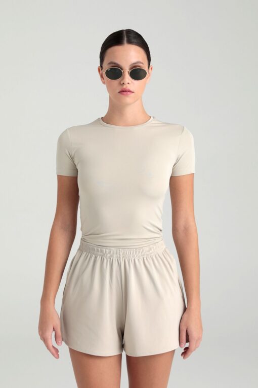 SHEISMONO Soft Touch Yuvarlak Yaka Kısa Kol Bluz Bej