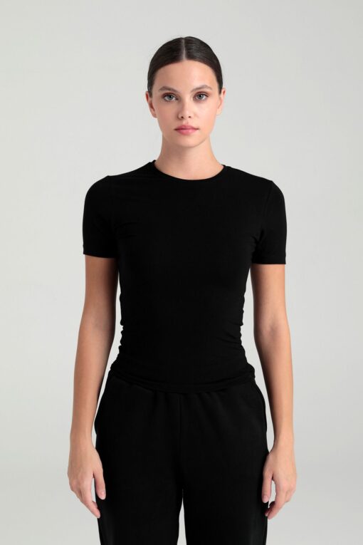 SHEISMONO Ultra Soft Yuvarlak Yaka Kısa Kol Bluz Siyah