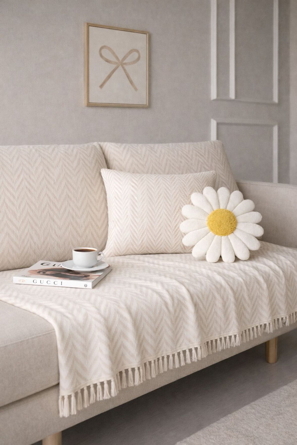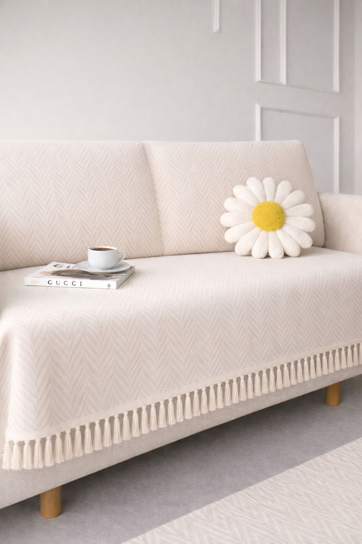 Sheri Home Bianca Koltuk Örtüsü Kaymaz Kumaş Özelliği | Koltuk Şalı 185 X 200 Cm EKRU8882199