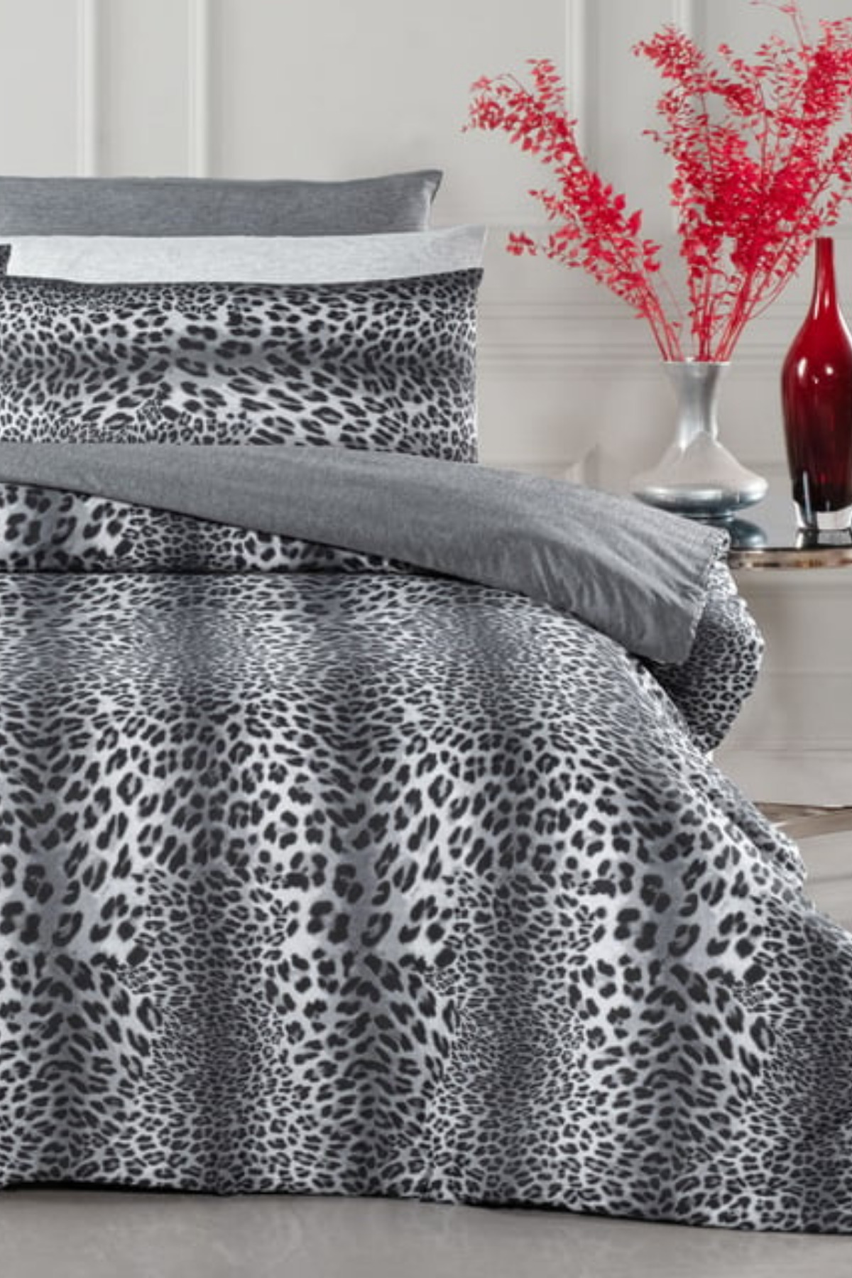 İQON Lastikli Çarşaflı Nevresim Takımı Çift Kişilik Leopar Premium Cotton 64s
