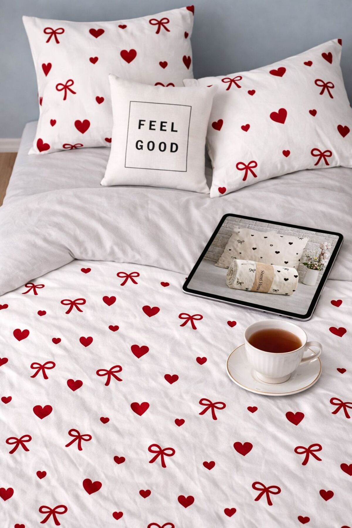 Always Lastikli Çarşaflı Tek Kişilik Çift Taraflı Nevresim Takımı Pembe Kalpli