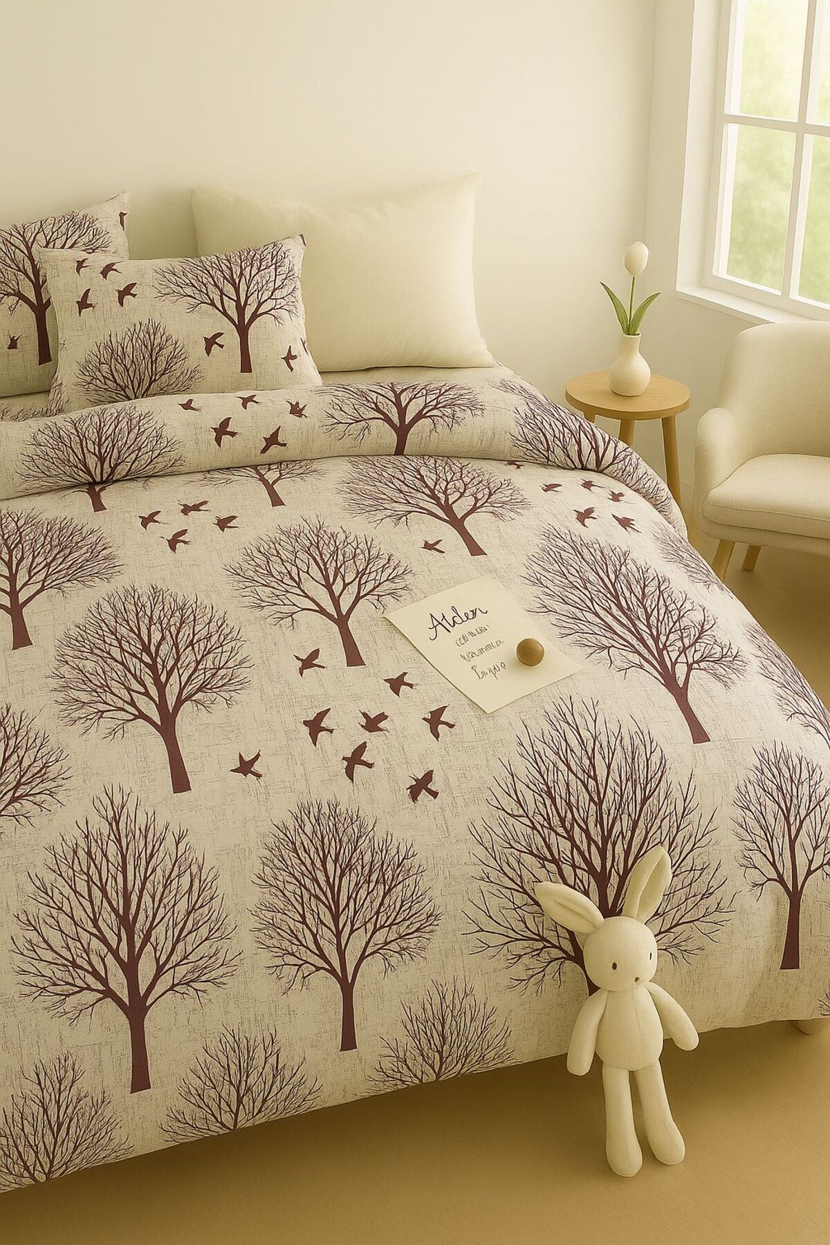 Sheri Home Tekstil YENİ Cotton Kahvereingi Ağaç Tek Kişilik Nevresim Seti