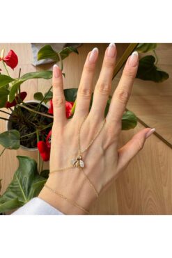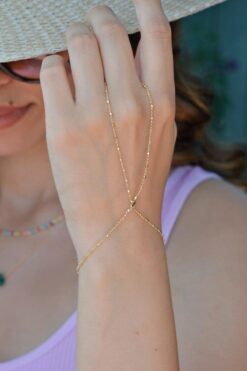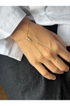 pop up store 14k Altın Kaplama Üçgen Model Taşlı Şahmeran / El Aksesuarı