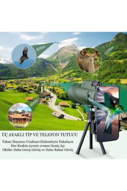 SHIPMENT 80X100 HD Zoom Monoküler Teleskop Dürbün Taşınabilir Telefon Tutucu Avcılık Kamp Spor