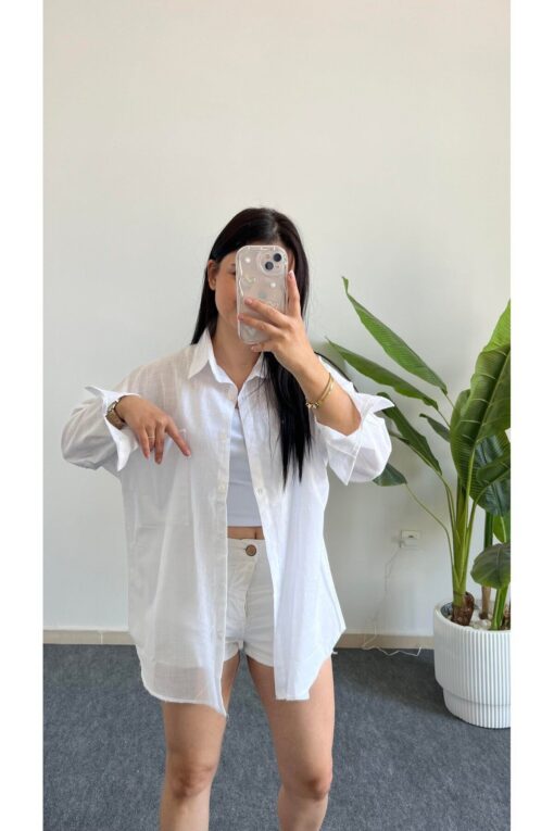 Shiron Sportswear&Company Yeni Sezon Beyaz Kadın Düşük Omuz Oversize Keten Cep Detaylı Gömlek en ucuz fiyata kozmetikara.com sitemizden sipariş verebilirsiniz.