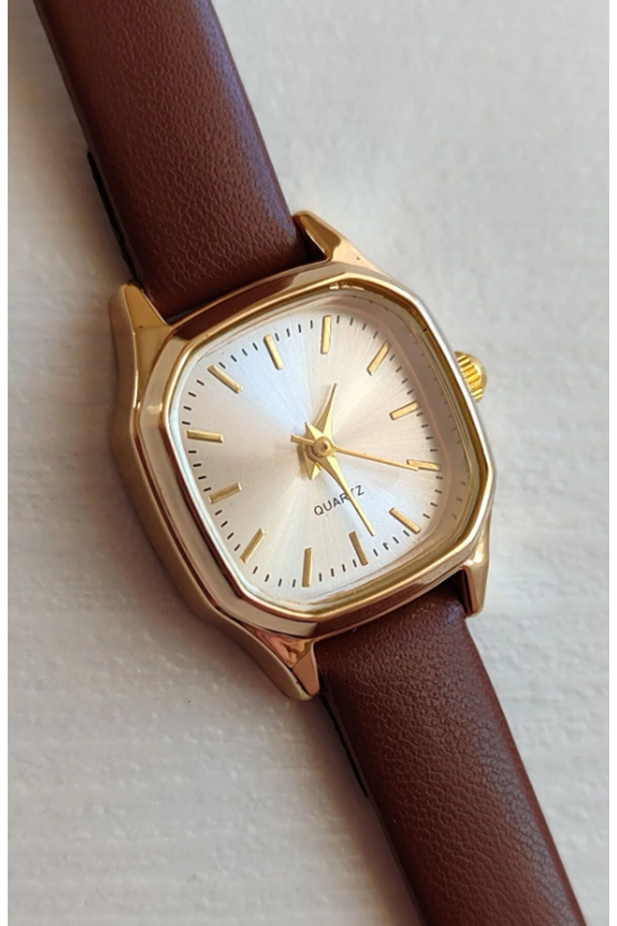 Kadın Vintage Minimal Kahverengi Kol Saati Yeni Moda Paslanmaz Kararmaz Deri Kordon Kol Saati Kasa Çapı 20 mm