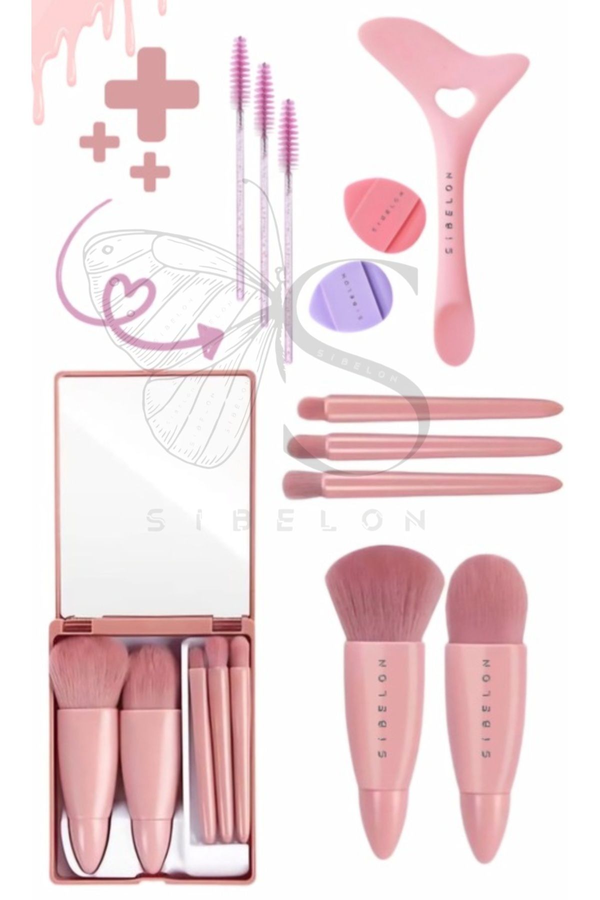 Sibelon Makyaj Fırça Seti Cam Aynalı Eyeliner Ruj Maskara Çekme Aparatı