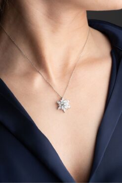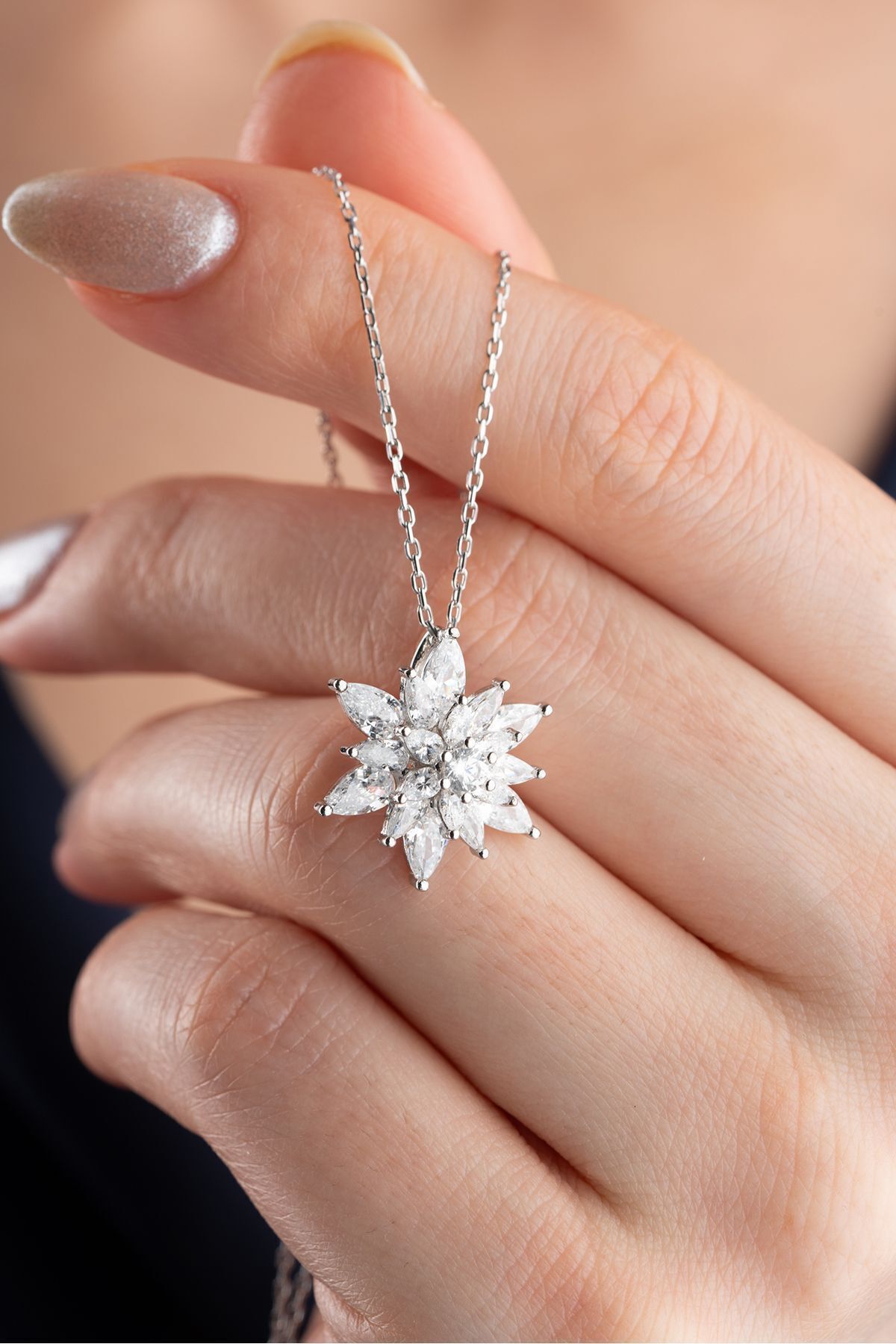 Silvano Jewelry 925 Ayar Gümüş Işıklı Kutuda Buzlu Lotus Çiçeği Kolye