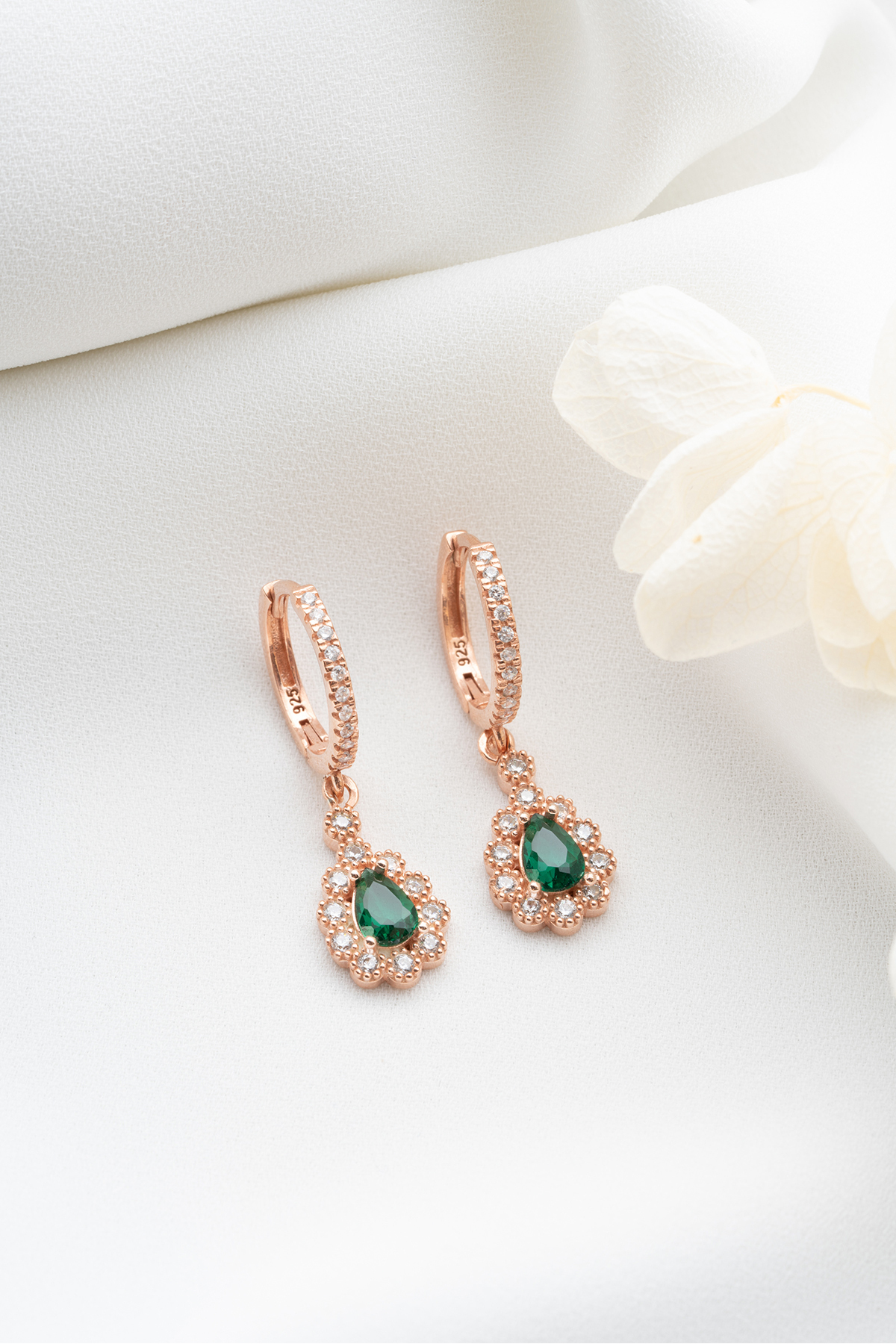 Silvano Jewelry 925 Ayar Gümüş Zümrüt Yeşili Damla Küpe