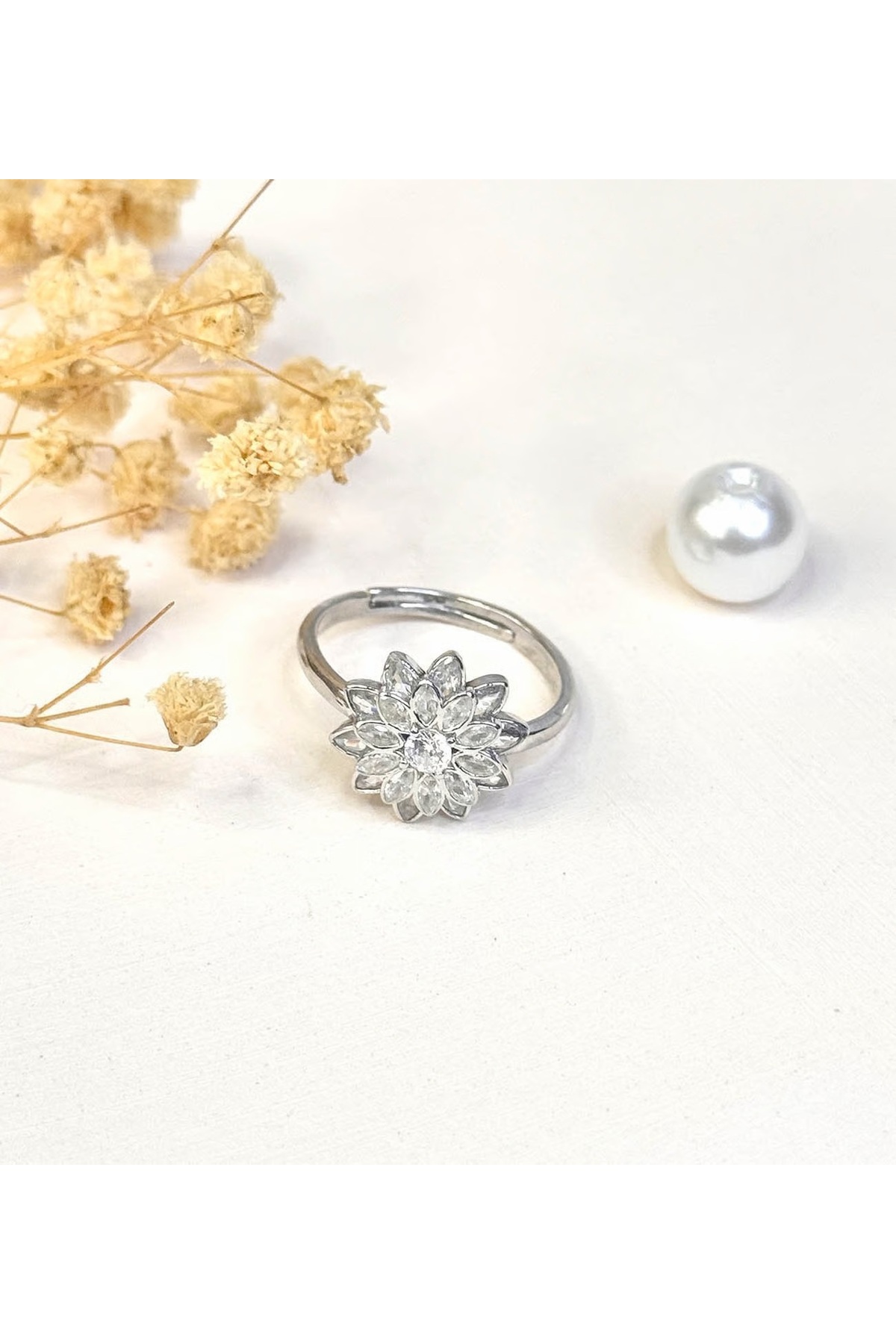 Silvanya Jewelry Işıklı Kutuda 925 Ayar Gümüş Ayarlanabilir Lotus Kadın Yüzük