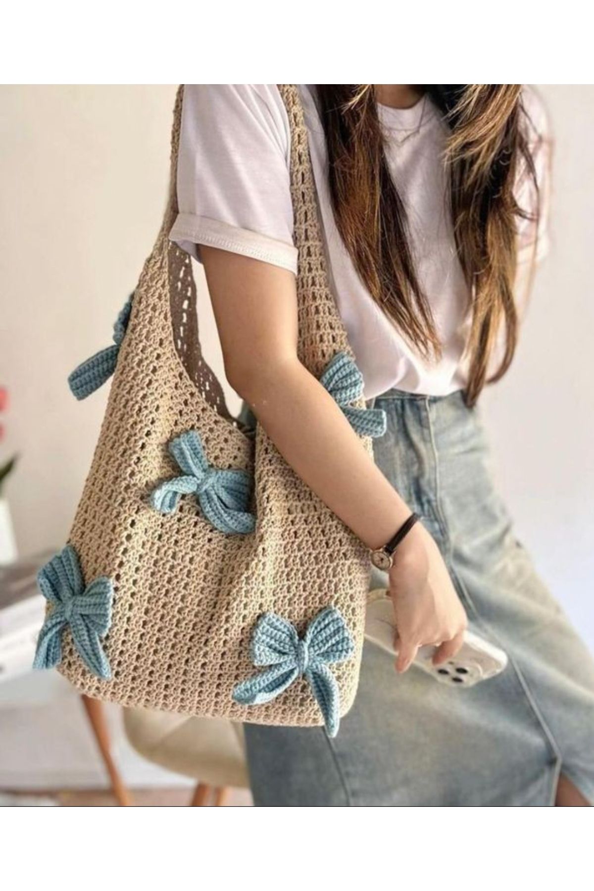 SİMAYMODDA File Çanta, Omuz Çantası, Hasır Çanta, El Örgüsü Çanta, Plaj Çantası, Makrome Çanta