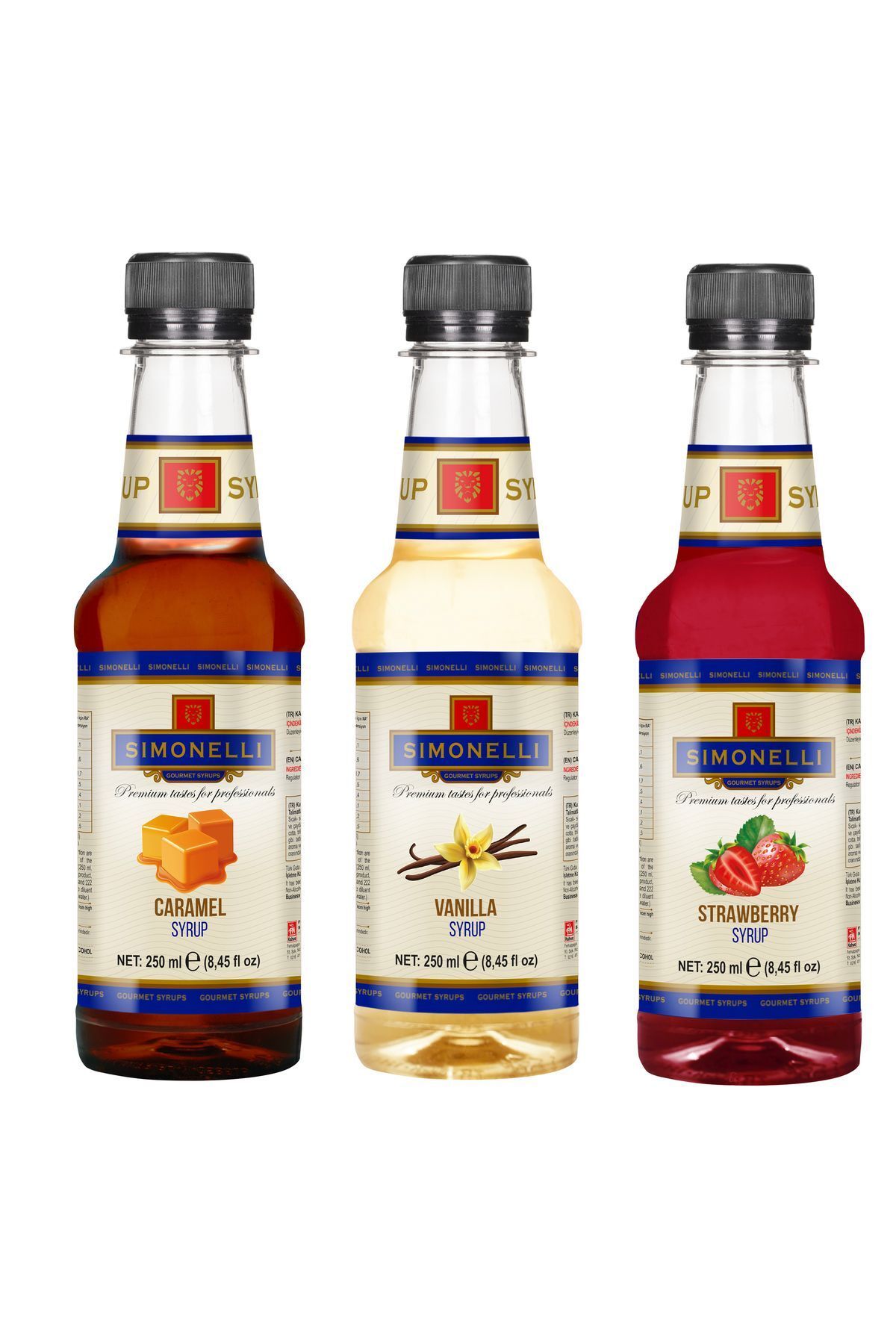 Simonelli 3’lü Şurup Seti (Karamel + Vanilya + Çilek) Kahve Ve Kokteyl Şurubu 3x250ml en ucuz fiyata kozmetikara.com sitemizden sipariş verebilirsiniz.