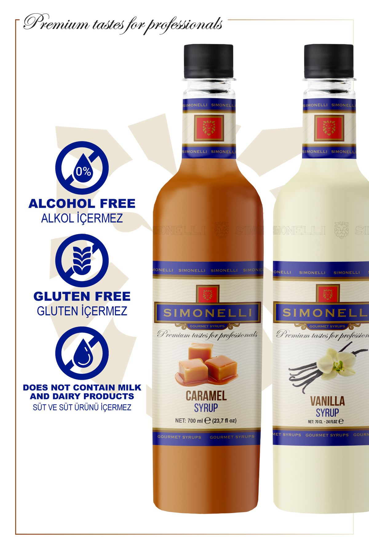 Simonelli Kahve Şurubu Karamel Aromalı Vanilya Aromalı 700 ml Pompa Hediyeli