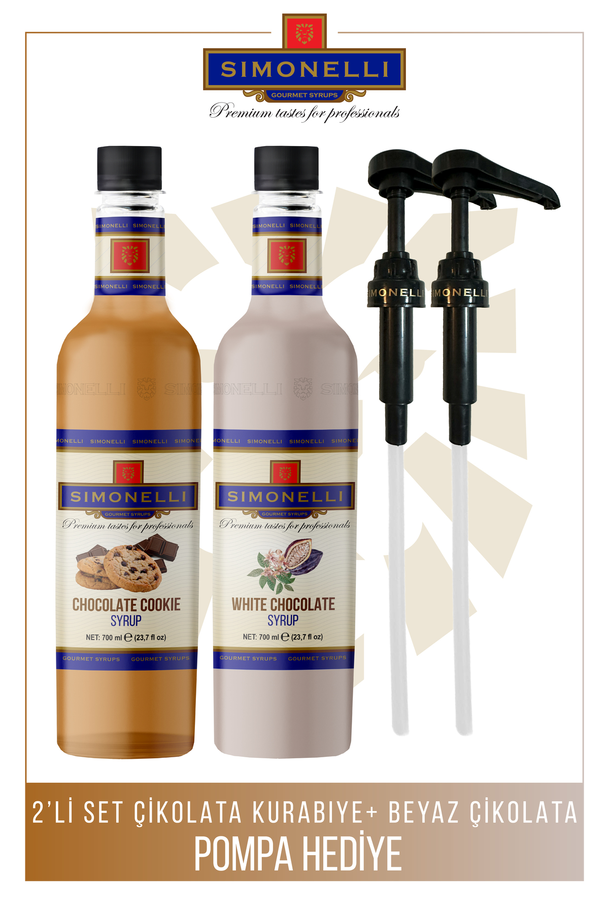 Simonelli Kahve ve Kokteyl Şurubu 2’li Çikolatalı Kurabiye Beyaz Çikolatalı 700 ml Pompa Hediye ürünü ucuz fiyat, hızlı kargo imkanı ile hemen sitemizden sipariş verin.