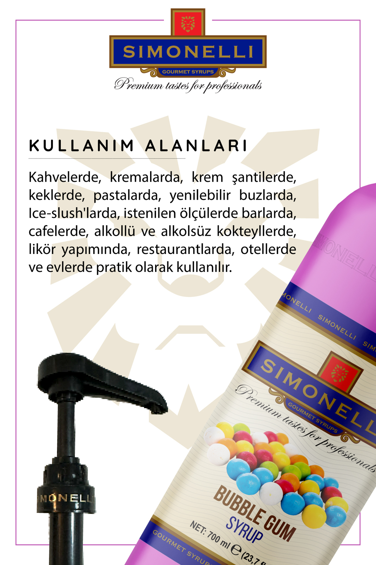 Simonelli Kahve Ve Kokteyl Şurubu Bubble Gum Aromalı 700 ml Pompa Hediyeli