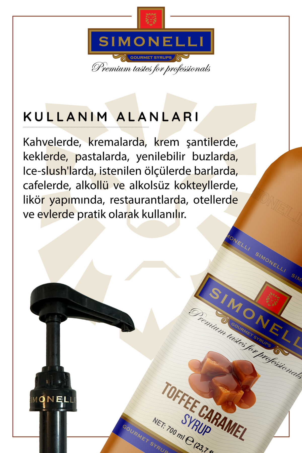 Simonelli Kahve Ve Kokteyl Şurubu Toffee Karamel Aromalı 700 ml Pompa Hediyeli