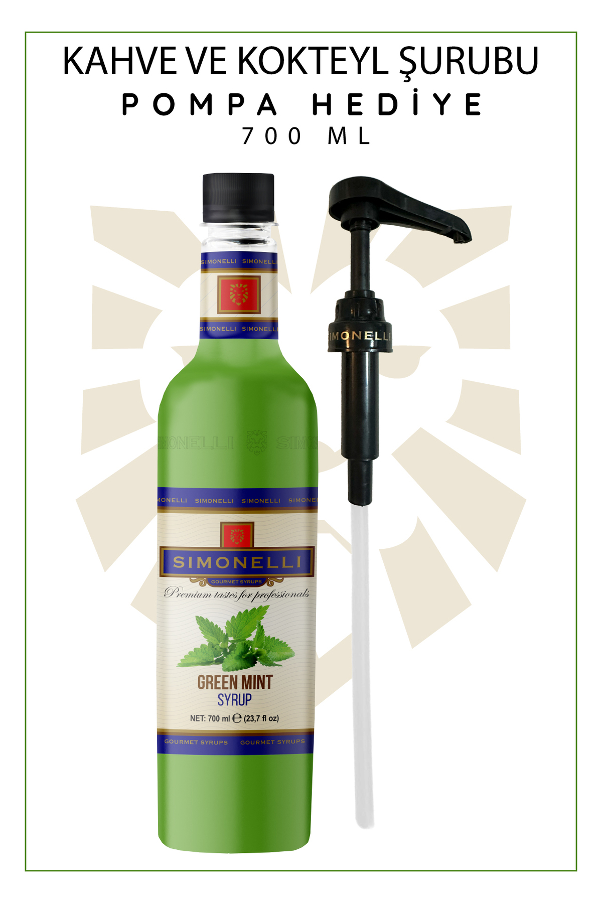 Simonelli Kahve Ve Kokteyl Şurubu Yeşil Nane Aromalı 700 ml Pompa Hediyeli