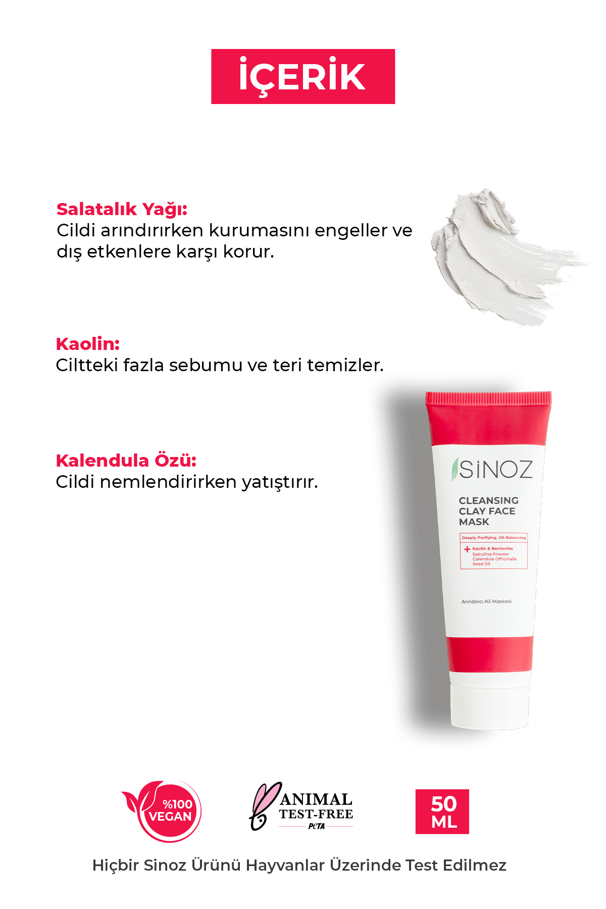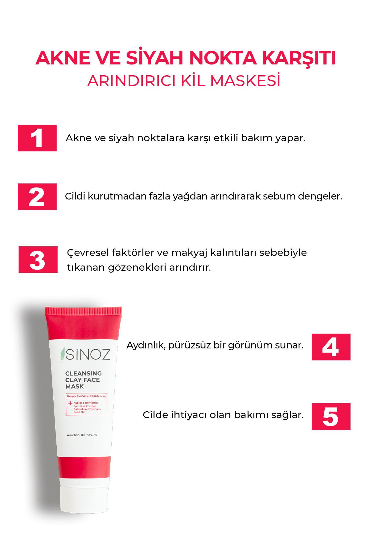SİNOZ Akne Ve Siyah Nokta Karşıtı Arındırıcı Yüz Bakım Kil Maskesi 50 ml Tüm Ciltler Için