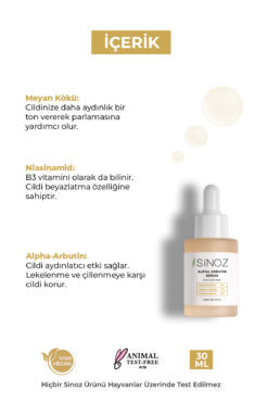 SİNOZ Koyu Leke Karşıtı Arbutin Cilt Serumu (Niacinamide 5% + Alpha Arbutin 2%) 30 ML ürününü en uygun fiyata kozmetikara.com sitemizden sipariş verebilirsiniz.